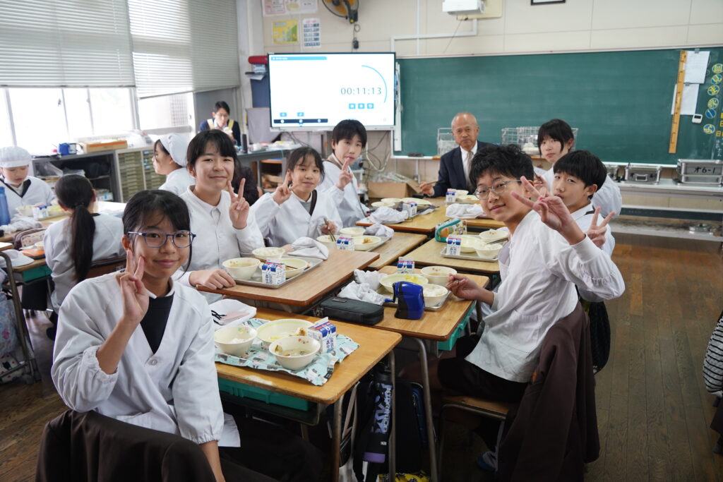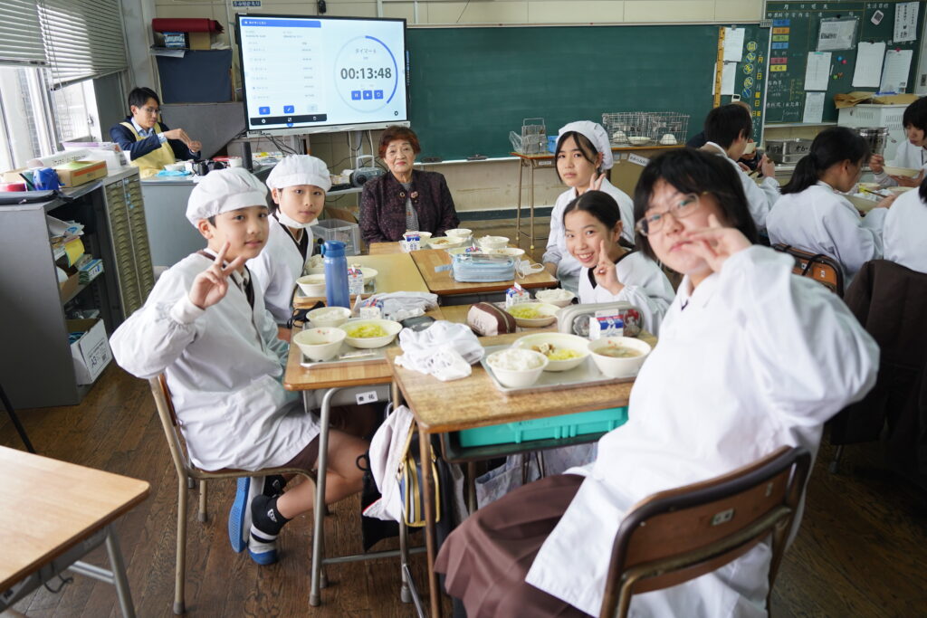 この日は、手作りみそを使った「根菜みそ汁」が振る舞われ、食べた児童からは「おいしい」「もっと食べたい」など笑顔がこぼれました。