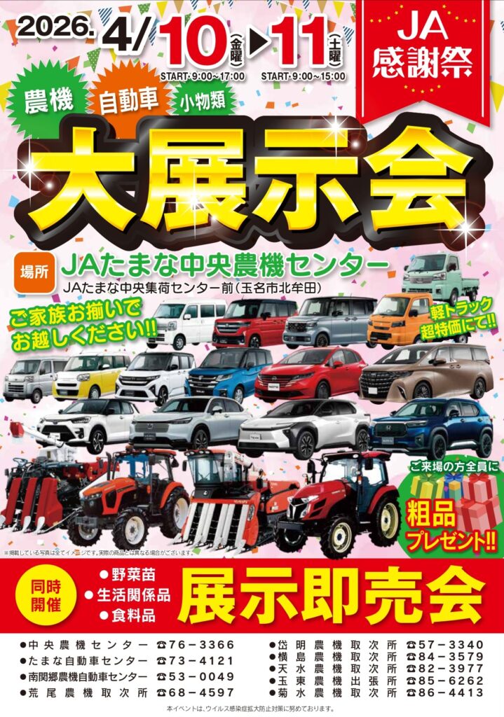 日頃の感謝を込めて農機自動車大展示会を開催いたします。